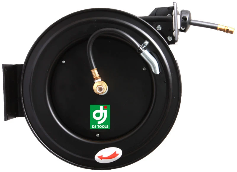 DJ TOOLS slangeopruller luft 15mtr er en automatisk slangeopruller i kraftigt åbent, pulverlakeret metalkabinet. Monteret med flex-trykluftslange med temperaturområde -40°C til +60°C. Leveres med fast vægbeslag – kobling medfølger ikke.