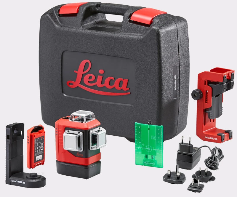 Leica Lino L6G 360° laser 3×360° grøn streglaser. Tynde, knivskarpe og meget tydelige laserlinjer: 1 horisontal og 2 vertikale med justerbar styrke. Justeringsskrue gør det meget let at indstille de lodrette linjer til de ønskede positioner. Tredobbelt strømforsyning: Li-ion-batteri med op til 11 timers drift, alkalinebatterier og oplader. Rækkevidde 35 mtr. (ø70) med lasermodtager (ekstra tilbehør) 70 mtr. (ø140). Nivelleringsnøjagtighed ± 0,2 mm/mtr. IP54. Leveres inkl. vægbeslag i kuffert.