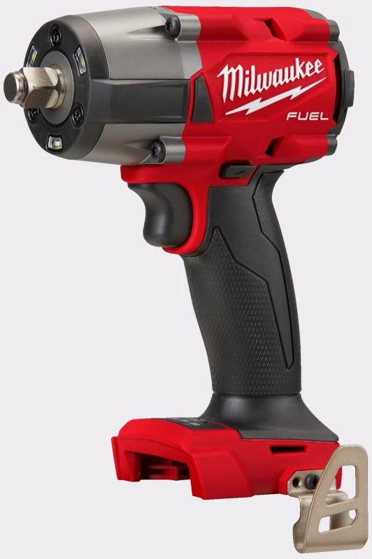 Milwaukee Slagnøgle M18 Fuel 1/2″ mellemstor slagnøgle med friktionsring. Markedsledende ydelse 881 Nm i løsrivningsmoment og 745 Nm i tilspændingsmoment. Længde på kun 152 mm. 4-trins Drive Control inkl. autostop-trin med maks. 34 Nm så der ikke risikeres overstramning af bolte, fjernelse af bolte giver fuld moment-effekt, mens hastigheden nedsættes så snart bolten er løs så den ikke tabes. Med 3 stk LED, som giver optimalt arbejdsbelysning. Fås som tool-only eller med batterier og lader.