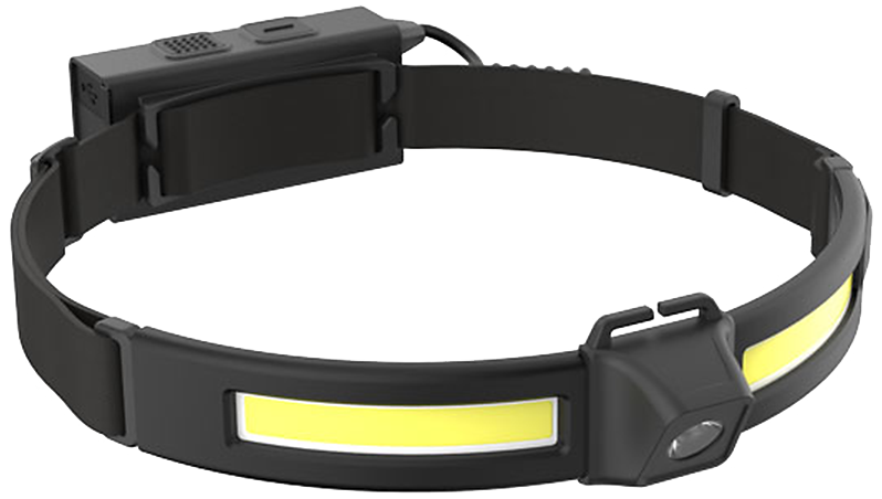Pandelampe med strop-LED og fokusspot. Yder 50-450 lumen med lysdæmper. Rød lys bagpå. Driftstid 2-18 timer. Opladetid 2,5-3,5 timer med USB-C. IP54. IK07.