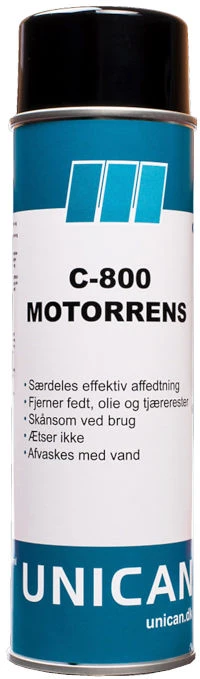 Unican C-800 Motorrens er en kraftfuld og skånsom afrenser, udviklet til hurtigt og effektivt at løse selv de mest krævende affedtningsopgaver. Den unikke sammensætning af rensevæsken gør C-800 Motorrens meget alsidig og let at anvende på en lang række overflader og materialer.