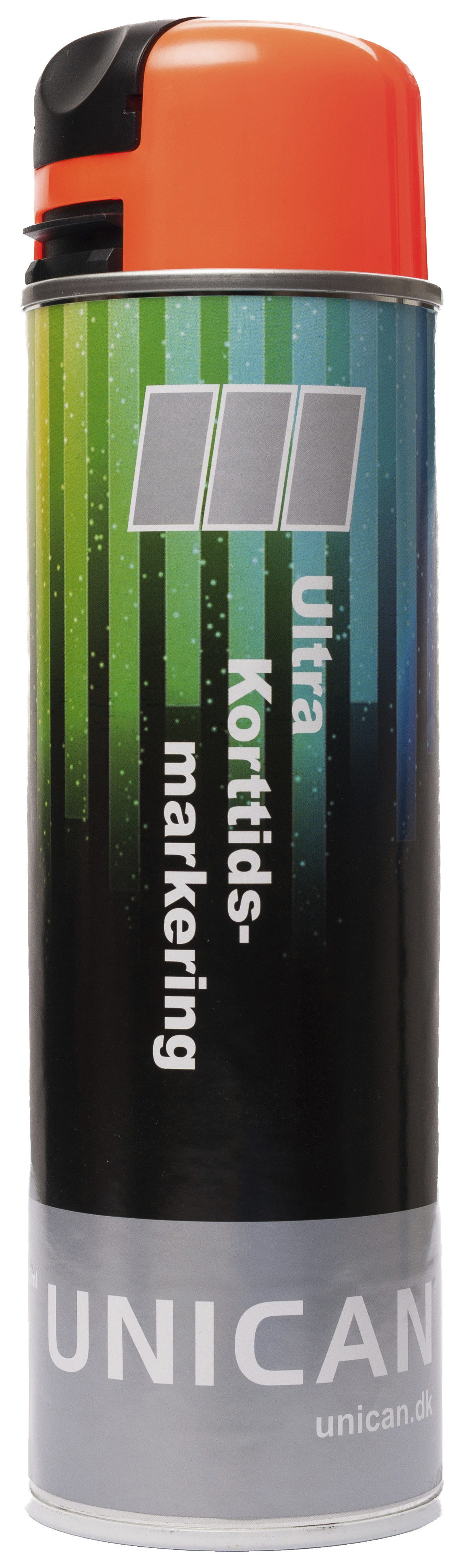 Unican Ultra markérspray orange er Event markeringsopgaver, kalkbaseret, patenteret sikkerhedshætte, kan anvendes ned til -20°C, skånsom mod græs og planter. Ultra korttidsmarkering kan hurtigt og effektivt bruges til en lang række forskellige markerings opgaver. Unican Ultra markérspray orange er ideelt til bl.a. opmærkning på sportspladser, golfbaner, til afmærkning af ulykkessteder for politi og brandvæsen, ved sportsarrangementer, markeder, ved byggepladser og andre steder, hvor en meget kort holdbar opmærkning er at foretrække. Produktets specielle kalk formulering, gør at UniCan Ultra korttidsmarkering er mild og venlig i forhold til planter og grønne områder og derfor kan anvendes både inden- og udendørs. Produktet skader normalt ikke de påførte og markerede områder (test anbefales på særlig følsomme emner). Da Ultra korttidsmarkering er baseret på en speciel kalk formulering, er markeringen kun synlig i få dage/uger afhængig af påvirkningen af vejr mv. Produktet kan vaskes af med vand. Meget regn og tung trafik vil få markeringen til at forsvinde. Det specielle spraysystem, giver et flot resultat, og gør arbejdet nemt og problemfrit. Ryst dåsen omhyggeligt, så kuglen er rystet løs. Ryst derefter i ca. 30 sekunder inden ibrugtagning. Efter brug vendes dåsen og dysen blæses ren. Fås i flere farver.